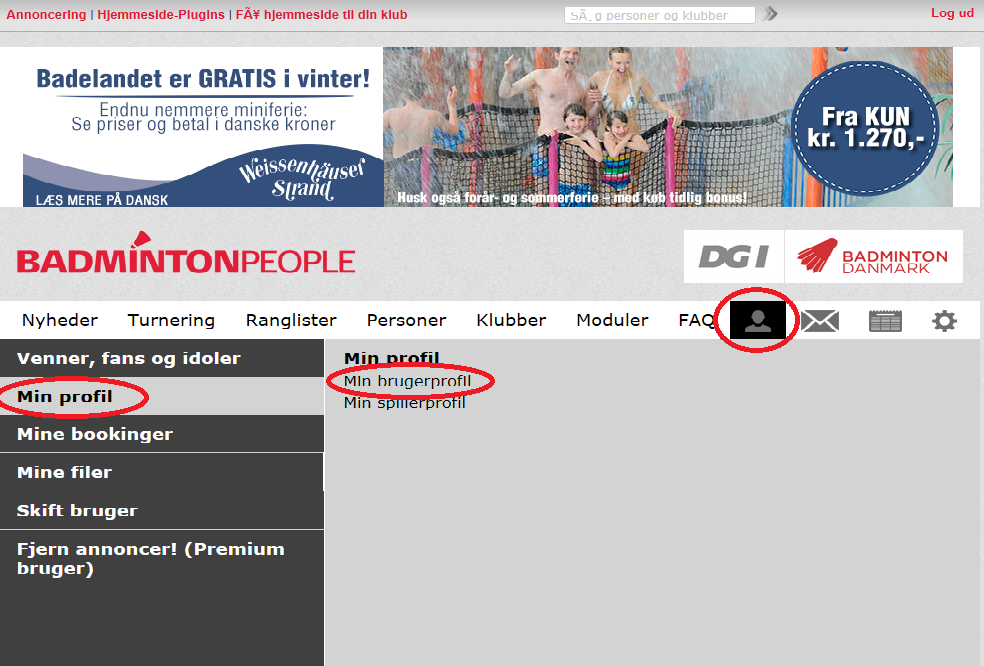 1. Log ind på BadmintonPlayer.
