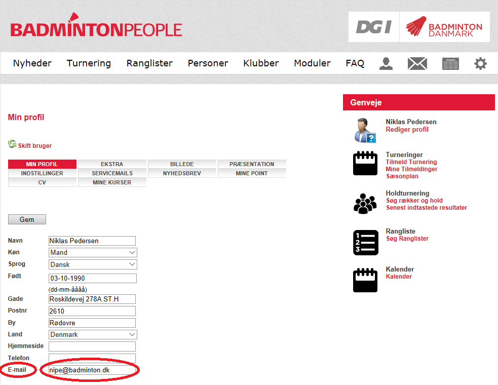 3. Ret her til den nye e-mail som skal anvendes.